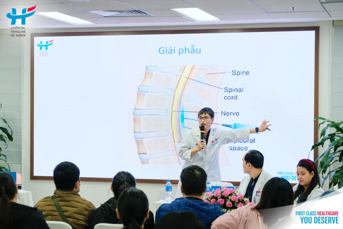 Bác sĩ cũng phân tích chi tiết quy trình gây tê ngoài màng cứng tại HFH: sau khi thực hiện thủ thuật, thuốc tê được truyền liên tục bằng bơm tiêm điện, với bác sĩ gây mê theo sát xuyên suốt cuộc sinh, giúp mẹ vượt cạn an toàn, giảm đau hiệu quả và hồi phục nhanh hơn sau sinh.